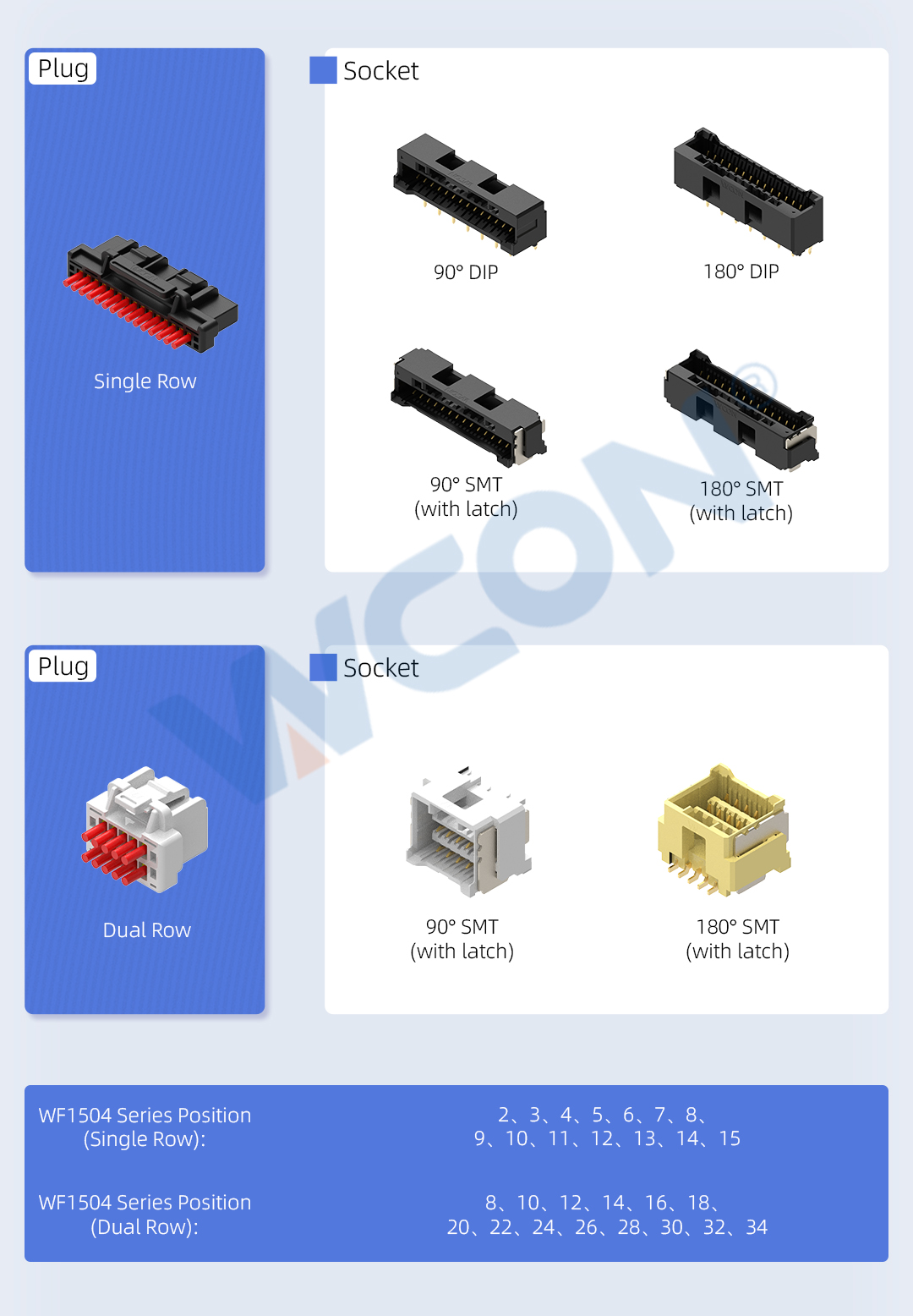 WF1504 Series 1.50mm Pitch Wire-to-Board Connectors | Internal Locking for Vibration Resistance, Compact