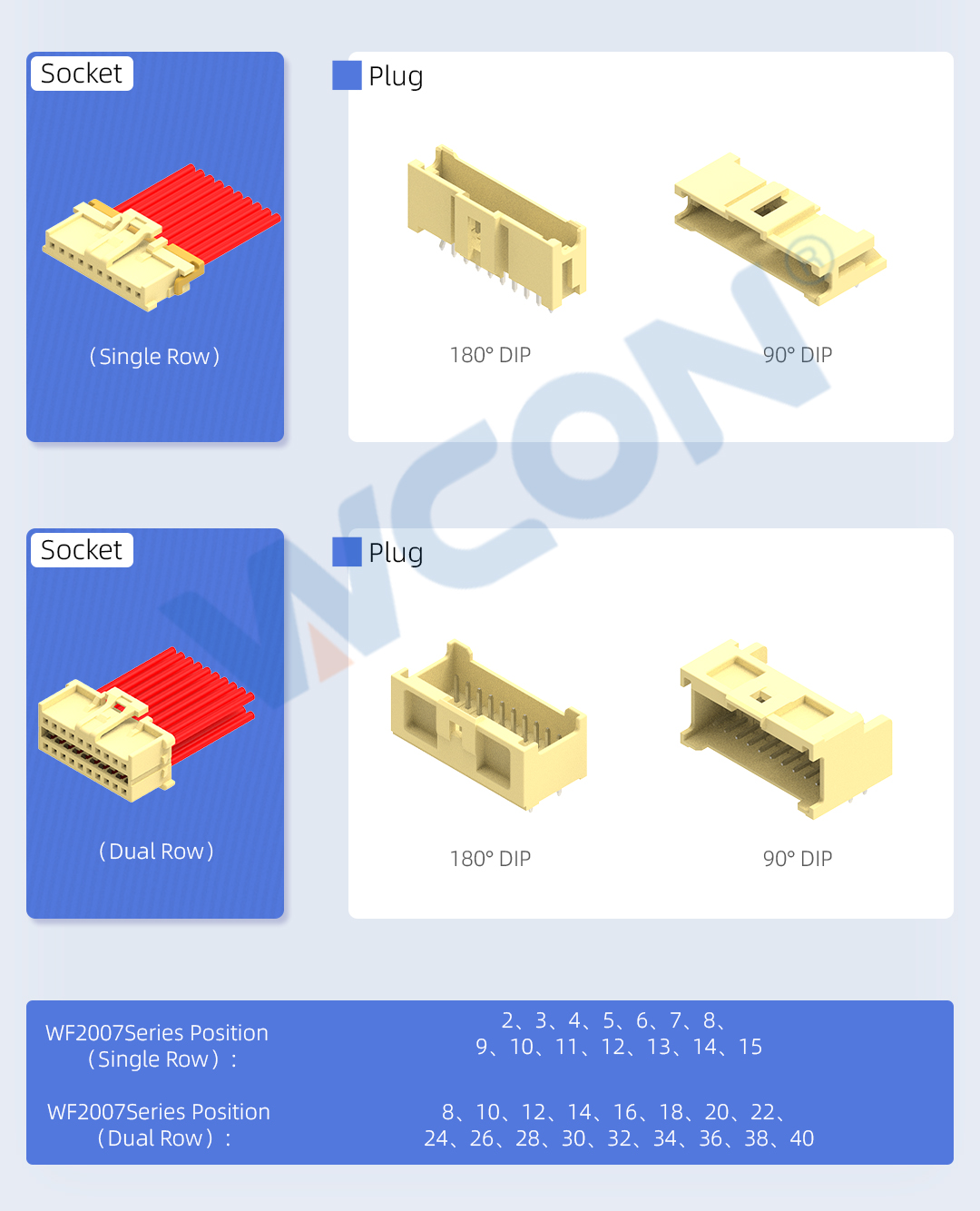WF2007 Series Connector: 2.0mm Pitch, Dual Locking, Robust Dual-Contact Design