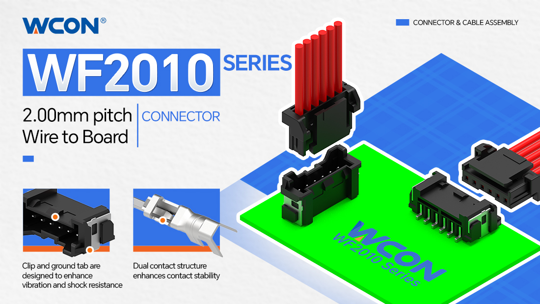 To meet the stringent demands for signal connection reliability in automotive electronics and industrial equipment operating under vibration and shock conditions, Weifeng Electronics introduces the WF2010 series—a high-density wire-to-board connector with a 2.00mm pitch. Featuring a dual-contact terminal design, it significantly enhances contact stability and delivers superior vibration resistance and shock tolerance. Its compact structure enables small footprint and high-density layouts, supporting flexible and diverse mounting options.